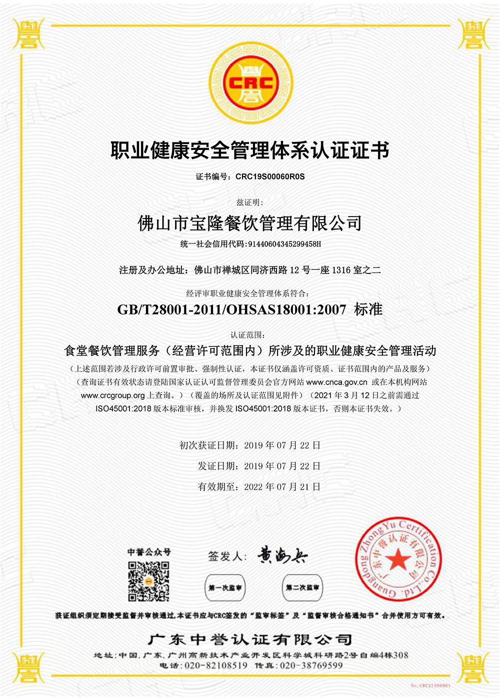 榮譽資質(zhì) 您的位置:網(wǎng)站首頁 > 關于寶隆 > 榮譽資質(zhì) 職業(yè)健康管理體系中 寶隆餐飲 更新時間:2020-07-16 佛山寶隆餐飲管理有限公司 閱讀 上一條環(huán)境管理體系英 下一條職業(yè)健康管理體系英