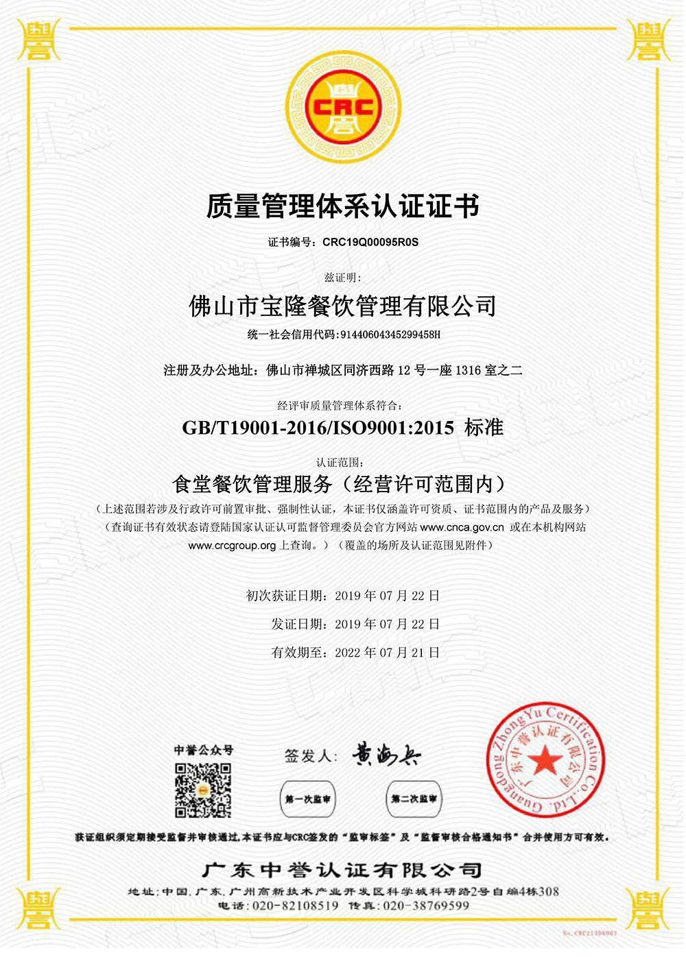 榮譽(yù)資質(zhì) 您的位置:網(wǎng)站首頁(yè) > 關(guān)于寶隆 > 榮譽(yù)資質(zhì) 質(zhì)量管理體系認(rèn)證中 寶隆餐飲 更新時(shí)間:2020-07-16 佛山寶隆餐飲管理有限公司 閱讀 上一條質(zhì)量管理體系認(rèn)證英 下一條環(huán)境管理體系中